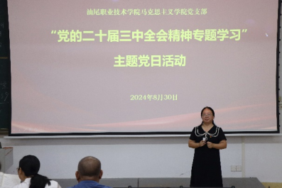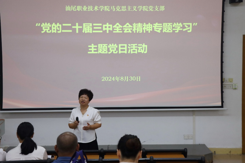 紧接着,王小梅老师对党的二十届三中全会《决定》进行了细致地学习辅导。她条理清晰、深入浅出的讲解,帮助大家全面把握会议的核心内容,进一步加深了全体党员对全会精神的理解和认识。