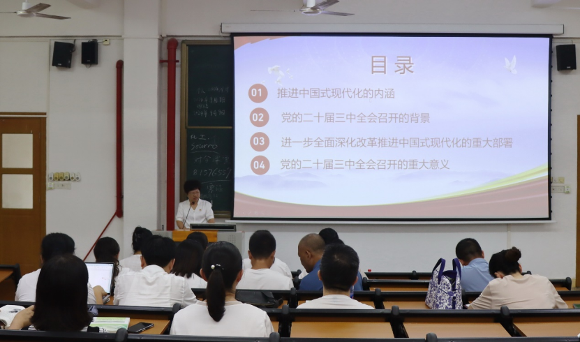 为深入学习党的二十届三中全会精神,提升全体党员教师的政治素养和理论水平,9月4日,bevictor伟德体育在笃学楼210教室开展了一场以“党的二十届三中全会精神专题学习”为主题的党课活动。此次党课全体党员教师积极参与,现场气氛热烈,学习氛围浓厚。