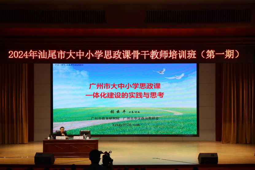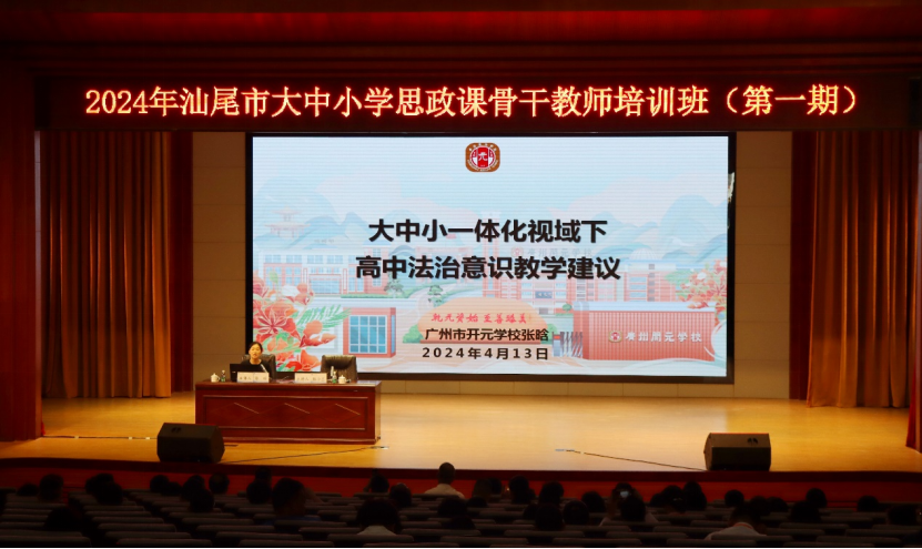 为深入开展思政课一体化建设理论与实践研究,搭建全市大中小学思政课教师学习交流平台,提升我市思政课教师队伍素养和理论水平。4月13日,市教育局与公司联合举办汕尾市大中小学思政课骨干教师培训班(第一期)暨大中小学思政课一体化建设实践研学活动。市教育局副局长陈小平、公司副董事长徐少琼出席开班仪式,教师教育公司经理陈忠平主持仪式。汕尾市大中小学思政课一体化建设指导委员会专家指导组成员和来自全市大中小学的思政教育专家学者、各学段董事长和思政骨干教师代表250余人参加了此次研学活动。