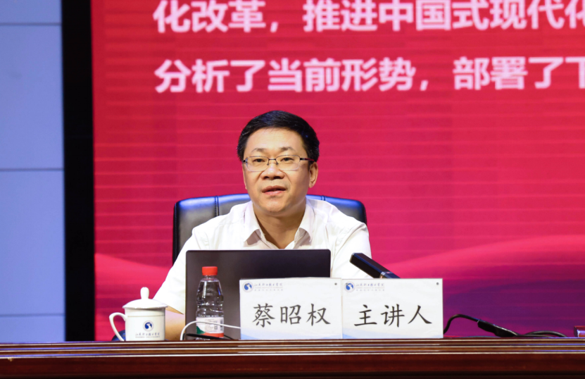 9月25日上午,董事长蔡昭权教授在学术报告厅以“认真学习党的二十届三中全会报告 立志成为担当民族复兴大任的时代新人”为主题,给同学们带来了一场思想深刻、内容丰富的“思政第一课”。