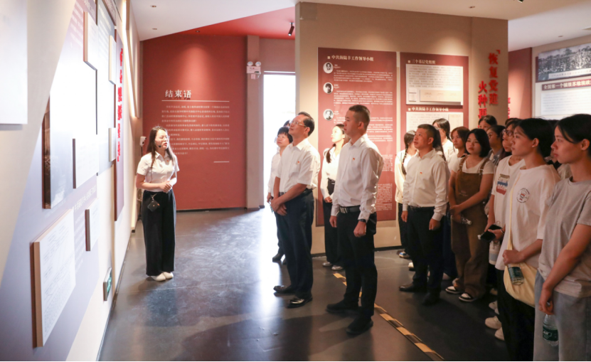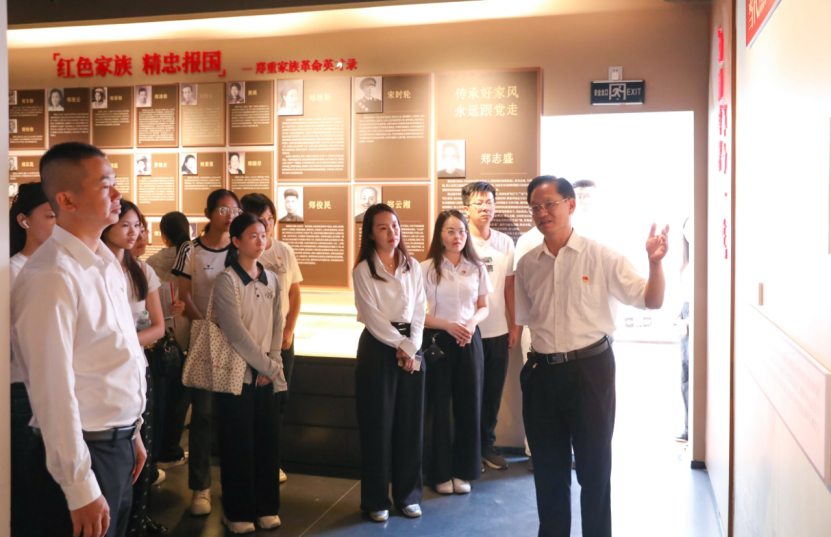 活动伊始,林来平带领师生们走进沁园,展馆的讲解员对沁园这一革命圣地的历史背景进行了详细地介绍,随后,林来平带领师生们参观沁园内的展厅,展室内,珍贵的历史文物、泛黄的老照片、栩栩如生的雕塑,无不诉说着海陆丰革命斗争的艰辛与辉煌。在展室二楼,林来平满怀深情地向师生们介绍了郑重的生平,并重点阐述了其卓越的历史贡献。他强调,作为新时代的青年学子,不仅要铭记历史、缅怀先烈,更要传承红色基因,努力学习、奋发有为,勇于担当时代责任。