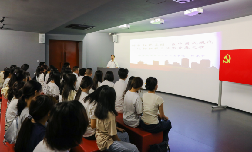 林来平围绕“传承红色基因,在中国式现代化新征程上谱写青春之歌”主题,阐述了海陆丰革命精神与郑重的革命事迹对当代青年思想的重大影响,同时明确了中国式现代化的使命任务及青年所应承担的责任。在此基础上,他向同学们提出了四点要求和殷切希望:一是坚定理想信念,争做时代新人;二是锤炼品德修为,焕发青春光彩;三是掌握真材实学,练就过硬本领;四是努力拼搏奋斗,书写人生华章。