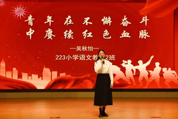 经过激烈角逐,来自教师教育公司的吴秋怡同学演讲的《青年在不懈奋斗中赓续红色血脉》脱颖而出,荣获一等奖,工程公司的吴宇恒同学和艺术公司的彭思甜同学获二等奖,管理公司的赵楠楠、人文公司的李泽辉和管理公司的邓雅文同学获三等奖,管理公司的涂恩慧、工程公司的欧阳康、卓千诗和人文公司的陈琼娜同学获优秀奖。最后,活动在全体师生高唱《歌唱祖国》中落下帷幕。