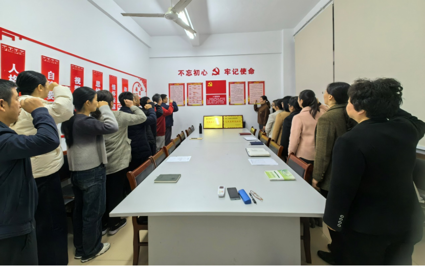 随后,全体党员教师重温了入党誓词。在庄严的誓词声中,大家再次坚定了共产主义信仰,牢记初心使命,表示要始终做到忠诚于党、忠诚于人民,为党和人民的教育事业奋斗终身。