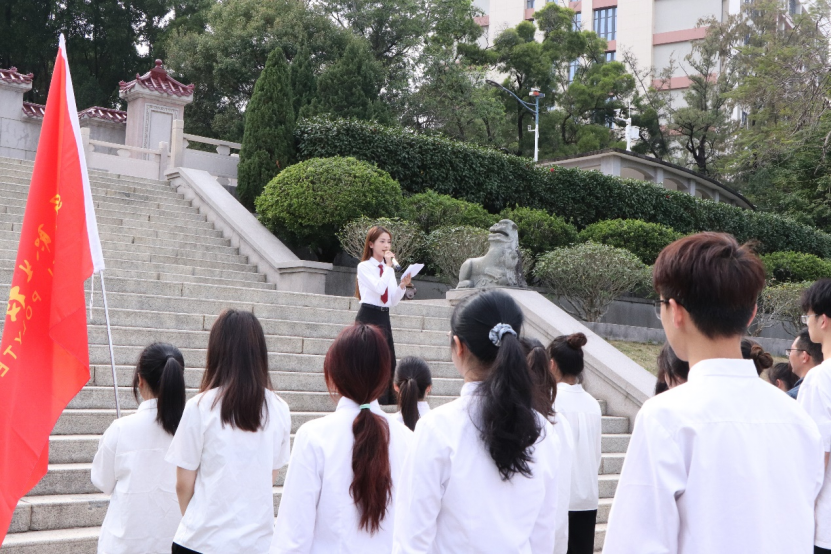 在海丰烈士陵园祭扫活动现场,奏唱国歌,员工代表向革命烈士敬献花篮,然后全体师生默哀三分钟,向烈士三鞠躬。随后,师生代表发言,号召大家继承先烈遗志、发扬光荣传统,铭记烈士们的英勇事迹,将他们的精神内化于心、外化于行。努力学习科学文化知识,提升自身素质和能力,为将来投身国家建设、服务人民做准备。