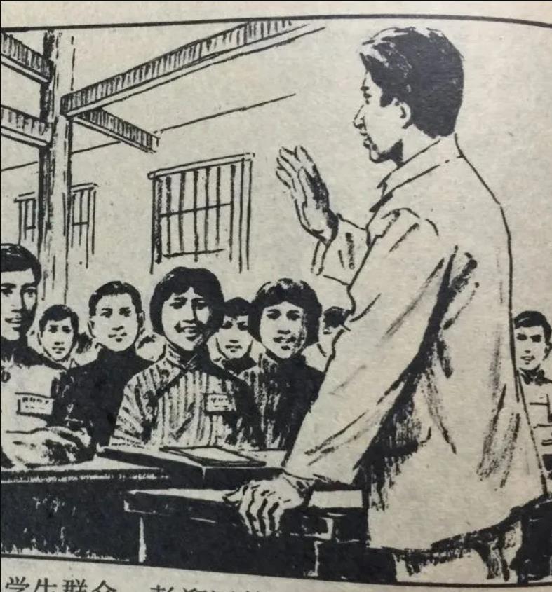 说着,他从衣袋里掏出一大张预先写好在白纸上的《国际歌》,挂在黑板上,高昂着头,自己先唱开了:“起来!饥寒交迫的奴隶!起来!全世界受苦的人!……”